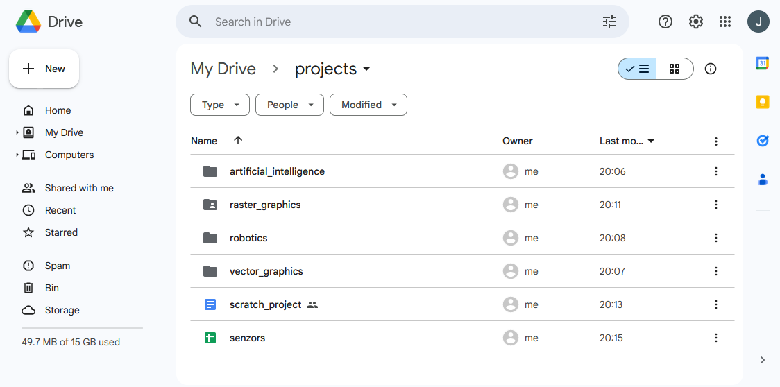Jasmina likes working with IT. She has created a folder called projects on Google Drive for her projects with various folders and files in it. In the picture we can see a screenshot showing the projects folder’s entire contents; it contains nothing else.